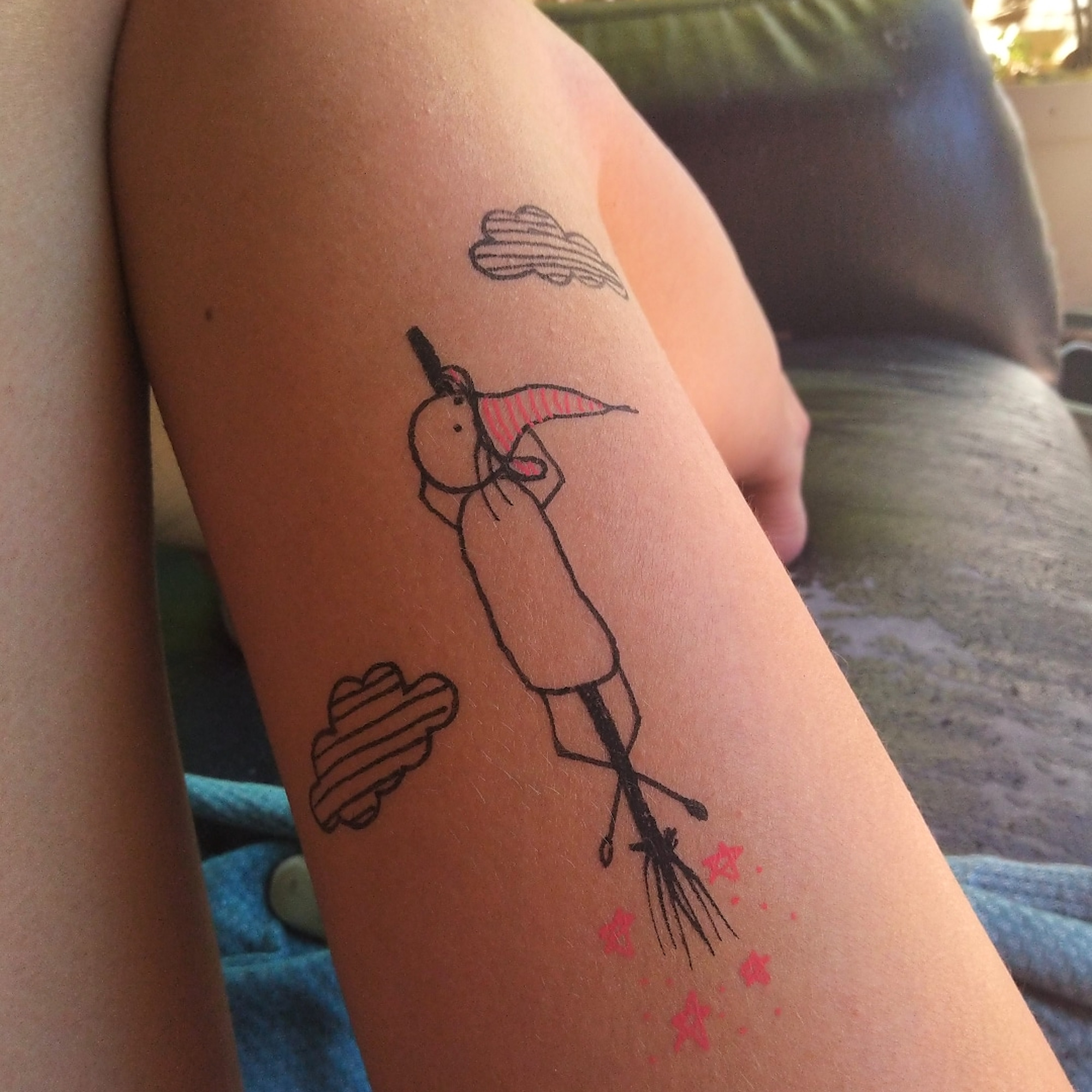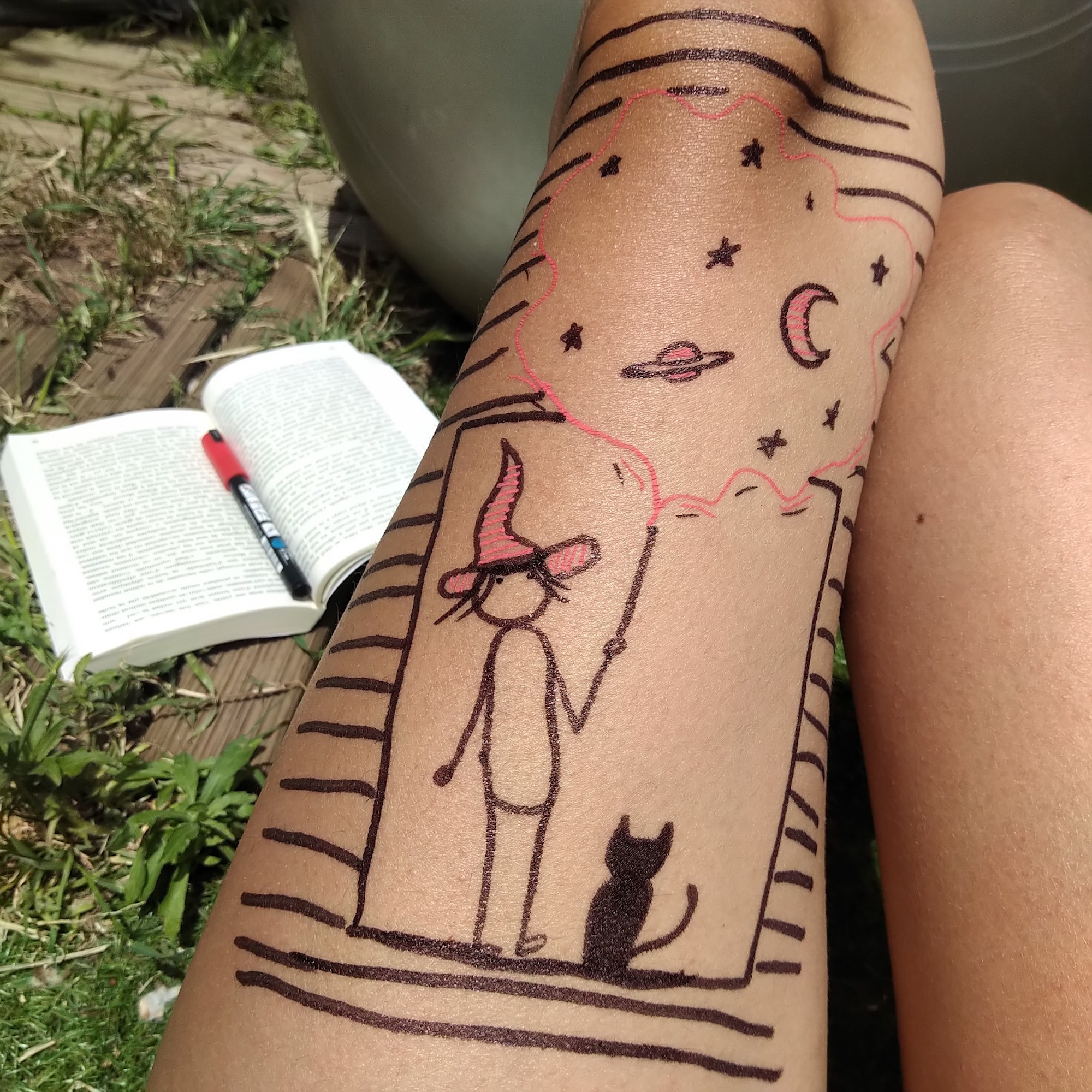 I make a cup of coffee. The sun is shining. I love feel ink on my skin and live with my draw all the day.